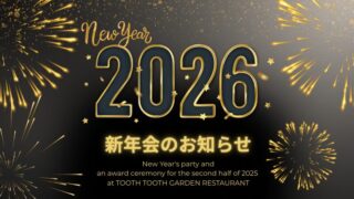 2026年 新年会のお知らせ日にち:2月7日(土)19:00~場 所:TOOTH TOOTH GARDEN RESTAURANT 費 用:4500円 (補助金があるので4500円です)神戸国際会館11Fのルーフトップテラス レストランです。...